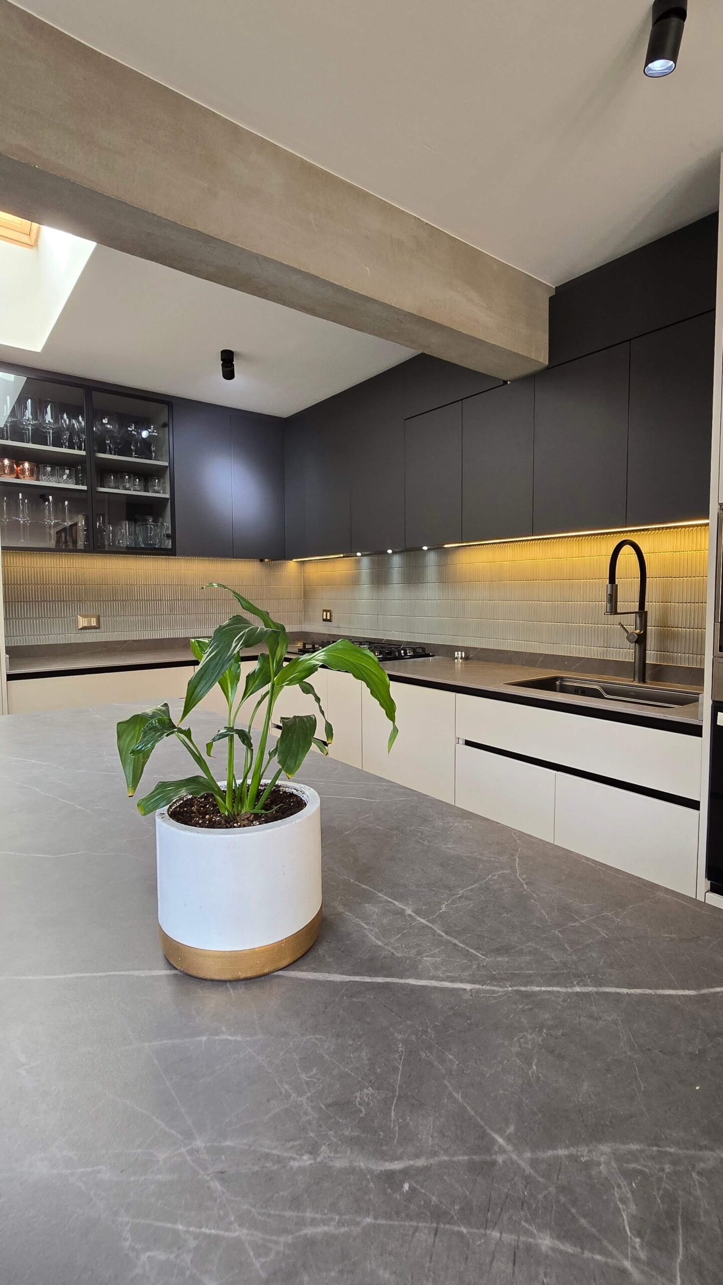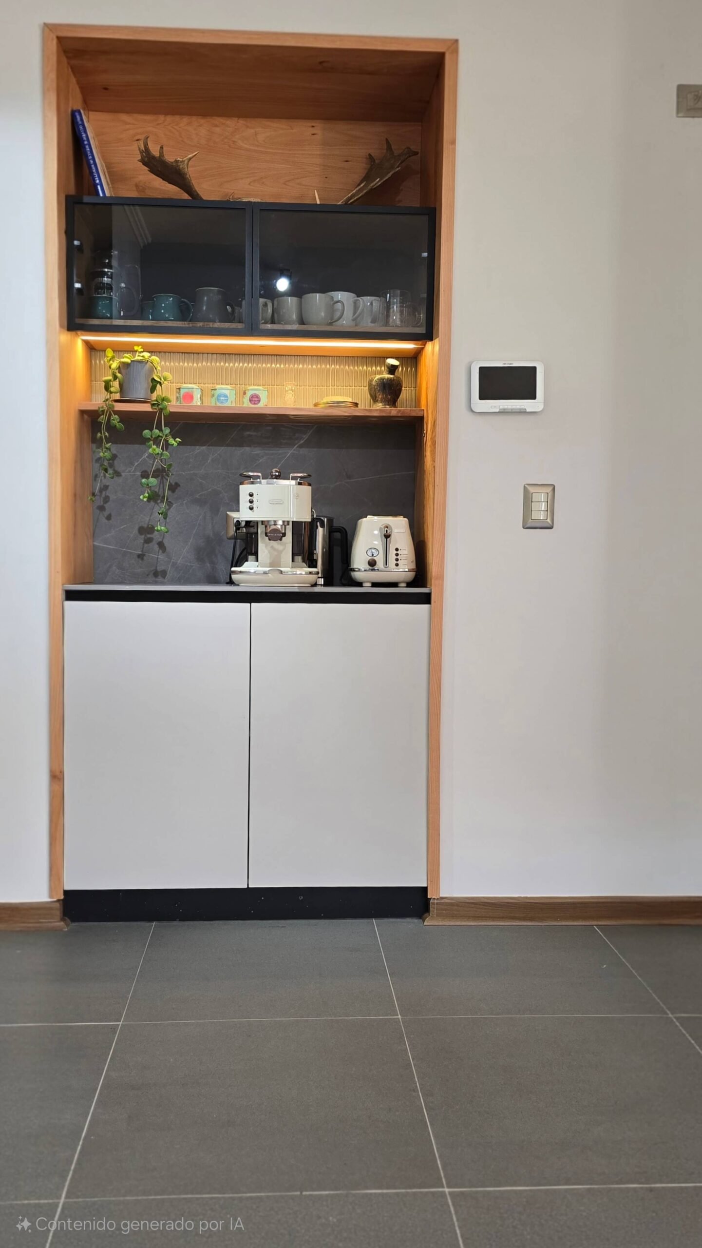 Proyecto de cocina que combina diseño contemporáneo y soluciones de mobiliario funcional. La propuesta destaca por sus líneas limpias, materialidad cuidada y la integración armónica de la carpintería en el espacio.