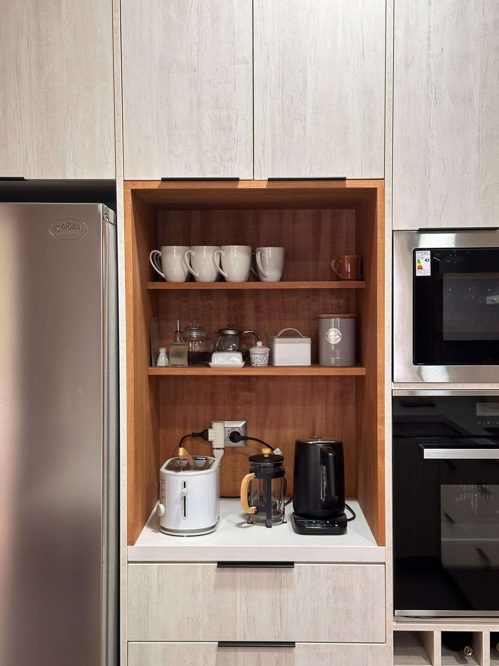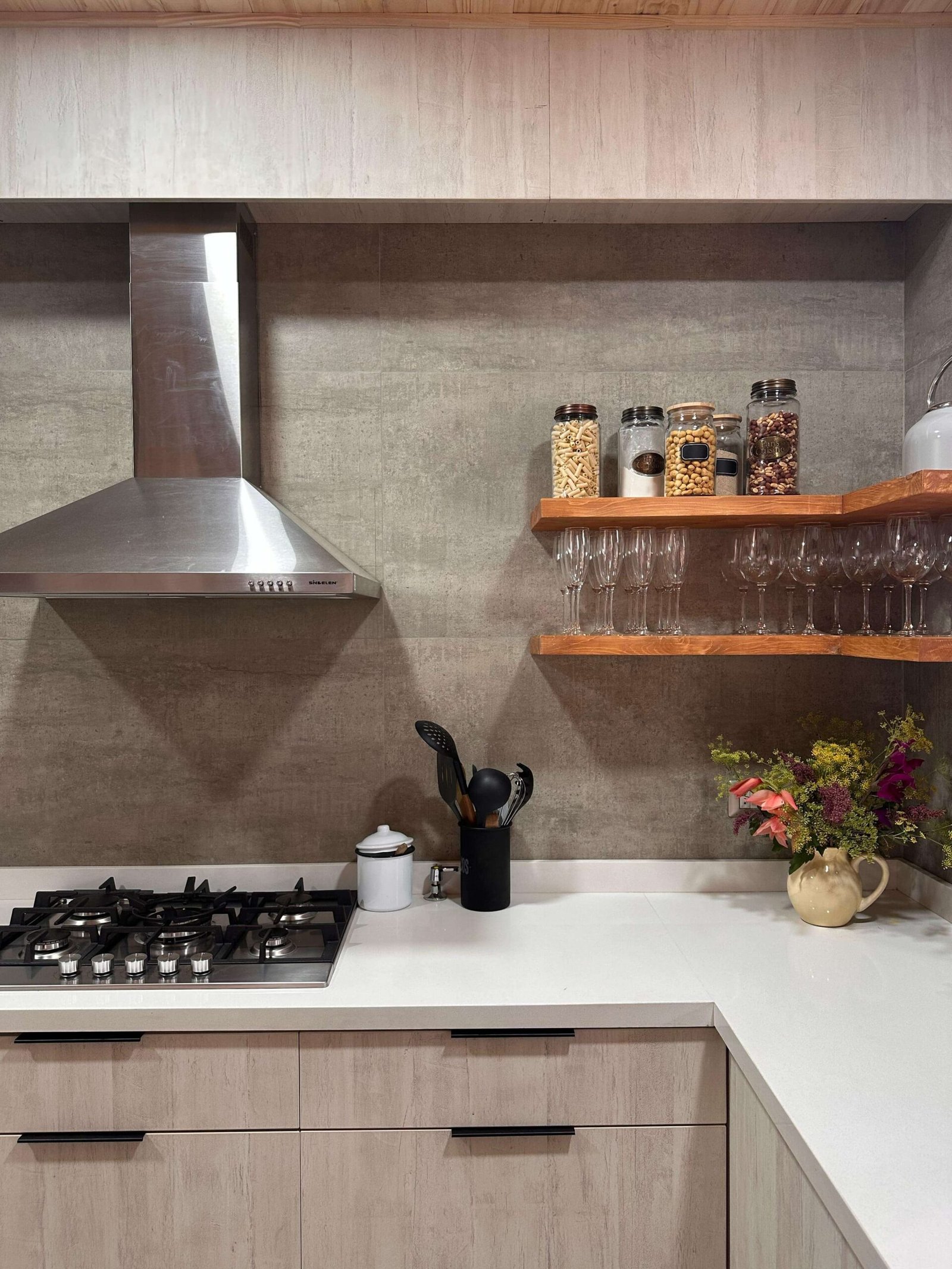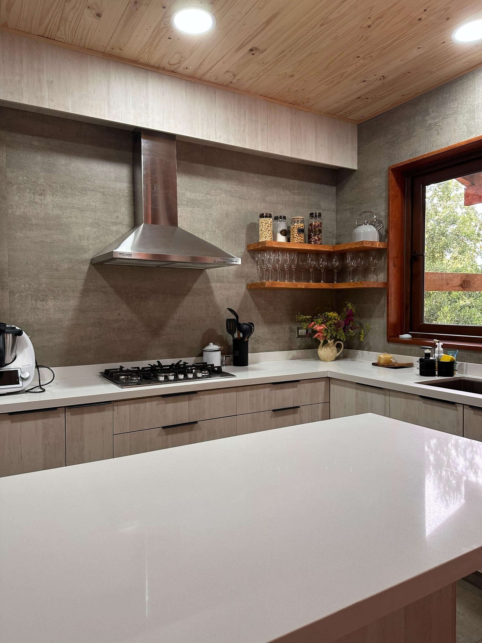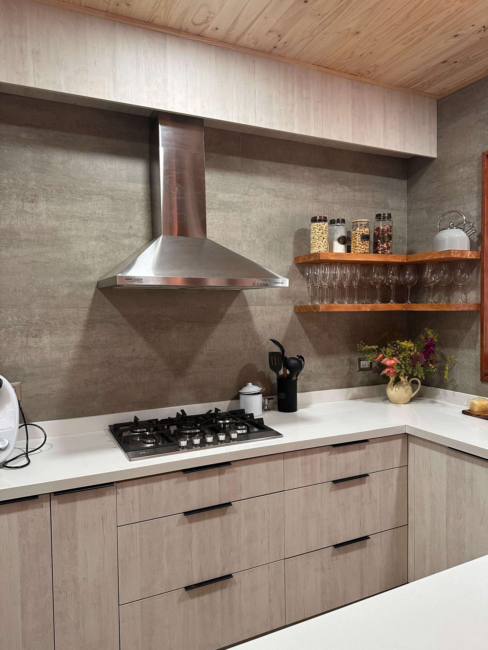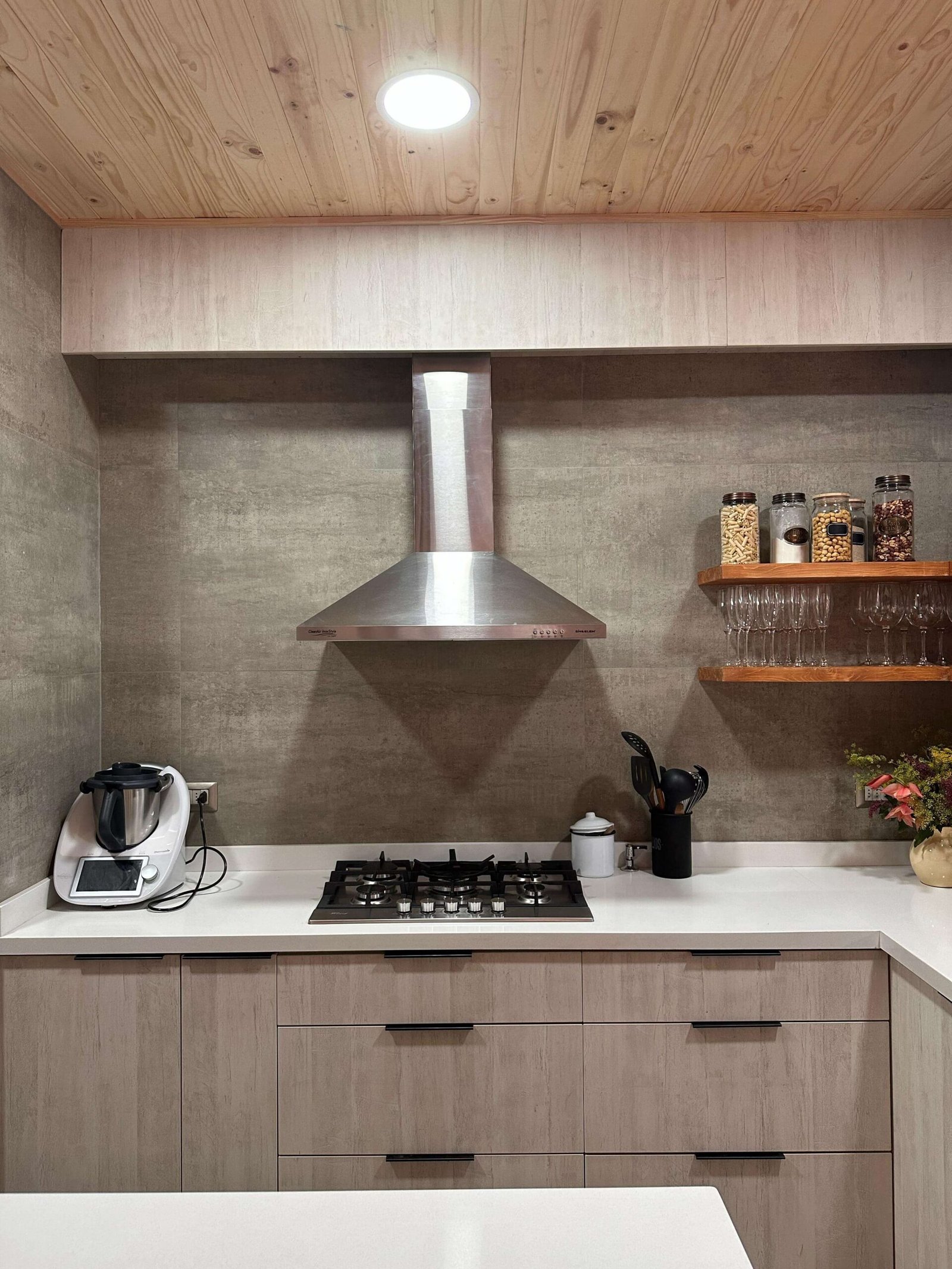 Proyecto de cocina que combina carpintería a medida y materiales cálidos, generando un espacio funcional y acogedor. El diseño prioriza orden, continuidad y cuidado por el detalle en cada elemento.